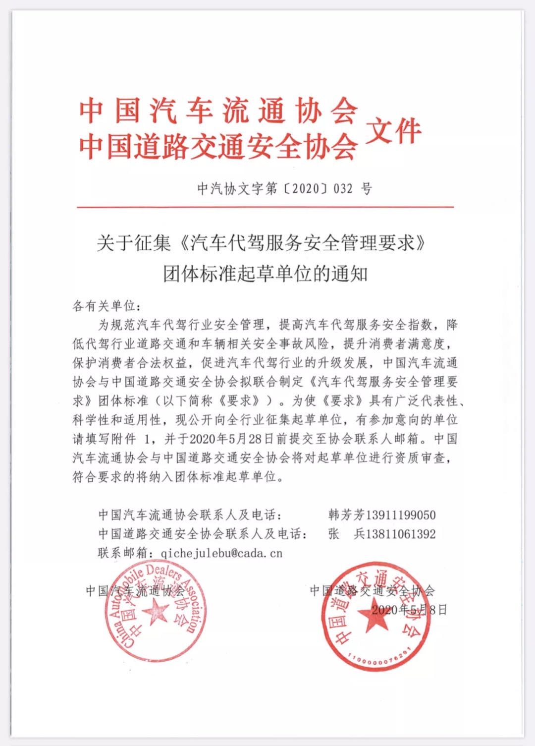 關於召開《汽車代駕服務安全管理要求》團體標準第一次研討會的通知