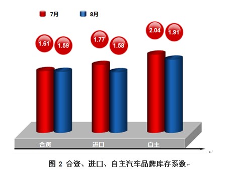 - 8月份進口、合資、自主品牌庫存係數均小幅下降