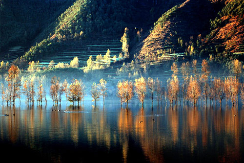 大山包位於(yu) 昭通市西部,距城區73公裏,海拔3100-3400米,年平均氣溫6.2℃。高處不勝寒--沒有桃紅柳綠,不見鶯飛草長,隻有綿延的山丘,固執而冷漠地隆起初竊原傾(qing) 斜的天穹下。瘠薄的黃土,要萌生一粒種子,抽發一片新葉,也要痛苦地撕開幾條挫斷的裂隙,卻也有大片的沼擇濕地和一湖明鏡樣的碧水,靜靜地、獨有靈犀地等待大自然深情的惠顧。