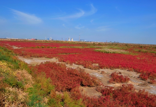 20萬畝畜牧草,10萬畝速生林,13萬畝人工檉柳林,50萬畝人工蘆葦與黃河口濕地的自然植被渾然一體,共同構築起一道靚麗的綠色生態景觀線。自2000年以來,黃河河務管理部門在黃河來水持續偏枯的情況下,實施黃河水量科學調度,使得黃河口濕地生態係統得到水源補給,濕地生態的逐漸恢複,也為鳥類提供了大量的水草、野草、穀物、昆蟲及水生動植物食物鏈,吸引了眾多的珍禽候鳥,“天上有飛鳥,地上野獸跑,魚蝦水中躍,綠林隨風拽,花兒競相開”的自然畫卷重現黃河口。