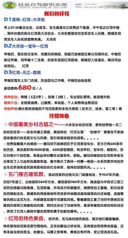 昆蟲自駕遊俱樂部元旦紅河大洋街3日自駕
