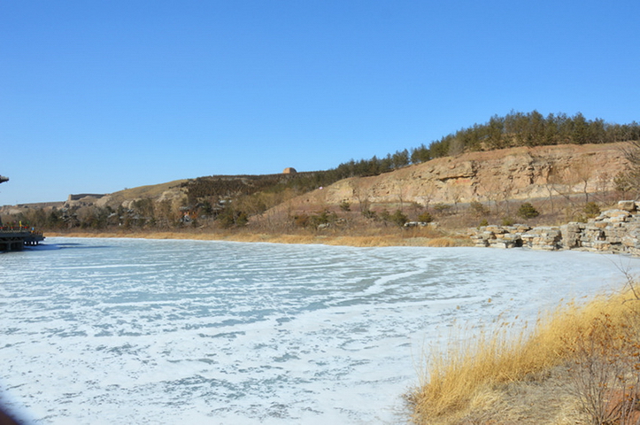 這是景區內(nei) 一個(ge) 湖麵,冰麵厚實啊,這個(ge) 真可以走!