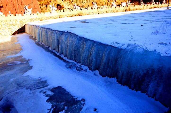 這是條河,不過成冰河了。據了解,雁門關(guan) 一年四季,隻有6、7、8三個(ge) 月是看不到冰雪的。。。