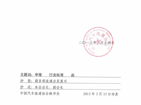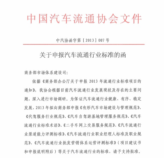 關於申報汽車流通行業標準的函