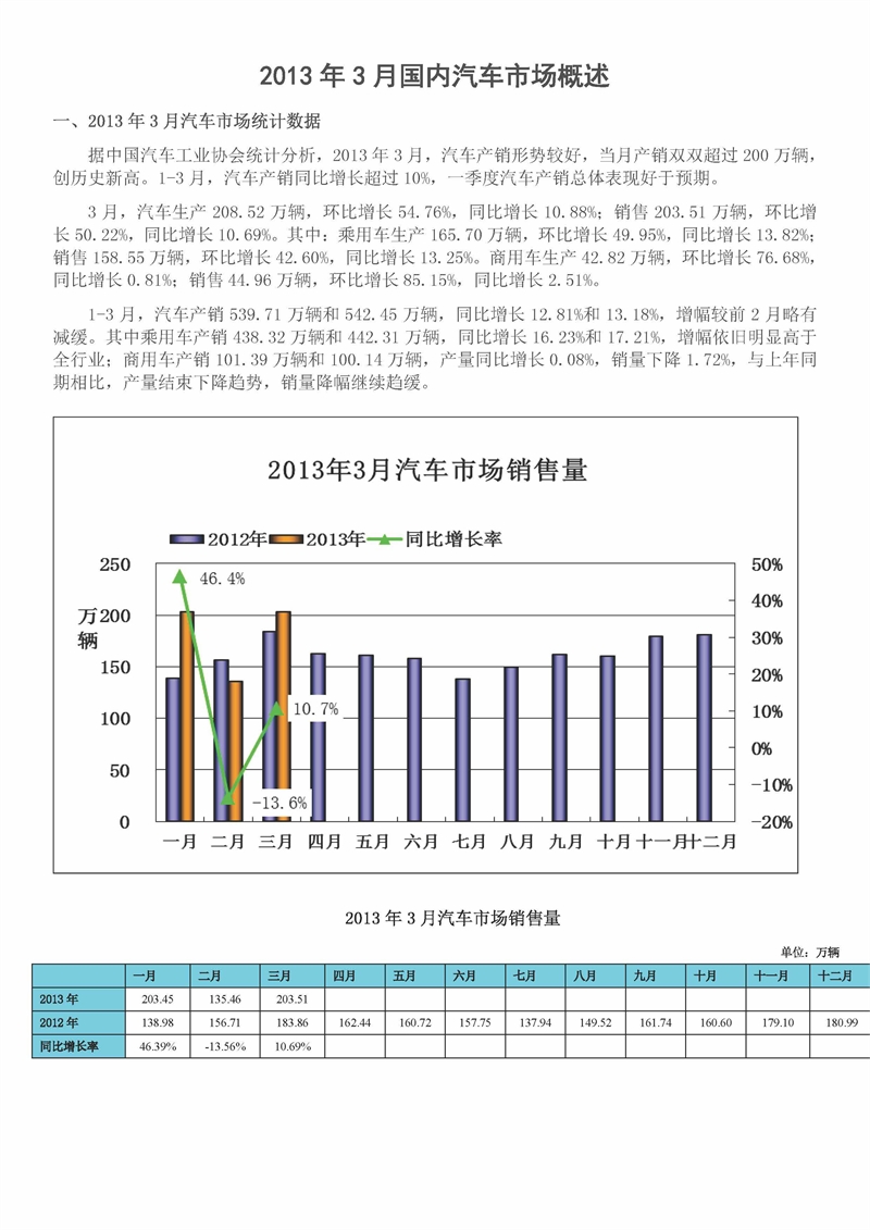 2013年3月汽車市場概述