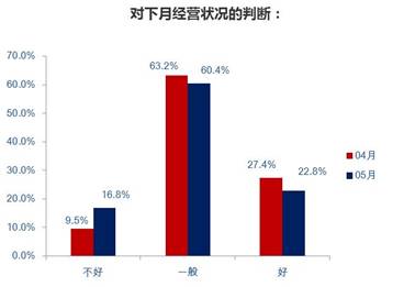 調查結果顯示,經銷商認為2013年5月經營狀況“一般”的經銷商最多,占60.4%。經營變“好”的比例從27.4%下降至22.8%,經營“不好”的比例略有增加,為16.8%。