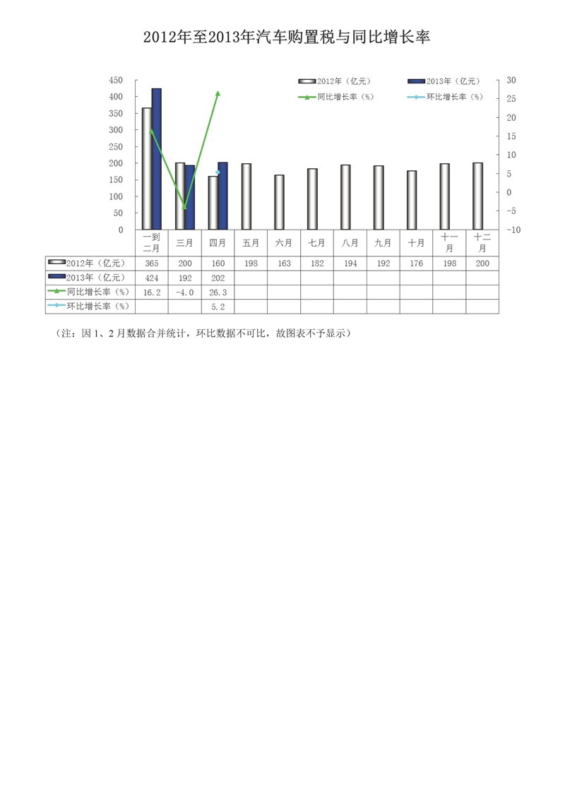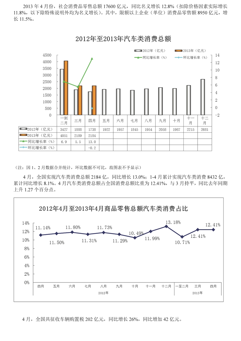 2013年4月汽車類消費占比與車輛購置稅統計數據