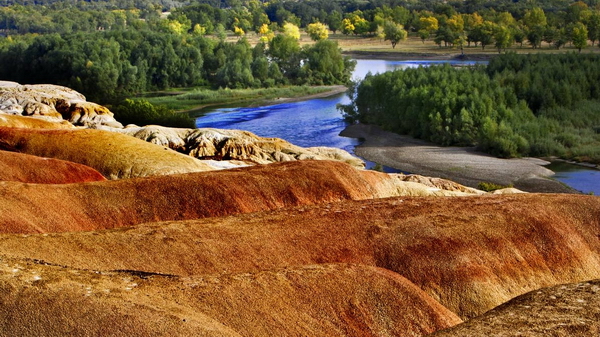 早餐後集結、編隊,離開烏(wu) 市前往布爾津,途中遊玩著名自然景觀火燒山、五彩灘。