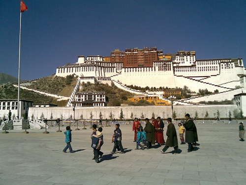 布達拉宮——是當今世界上海拔最高、規模最大的宮殿式建築群。世界文化遺產(chan) 。是曆代達賴喇嘛的冬宮居所,也是西藏政教合一的統治中心。整座宮殿具有鮮明的藏式風格,依山而建,群樓重疊,殿宇嵯峨,氣勢雄偉(wei) ,體(ti) 現了藏族古建築迷人的特色。宮中還收藏了無數的珍寶,堪稱是一座藝術的殿堂;