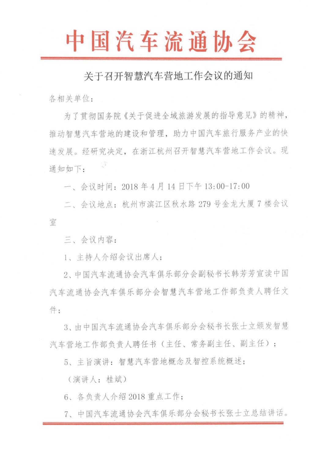 關於召開智慧汽車營地工作會議的通知