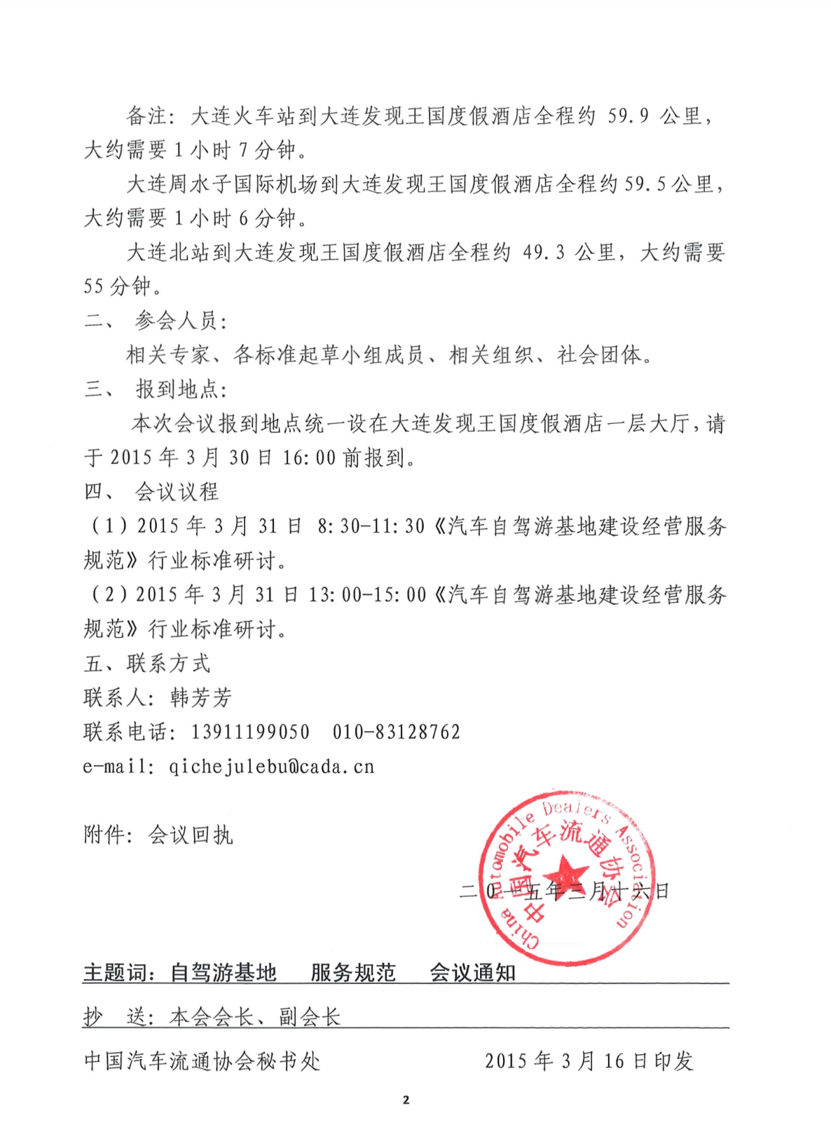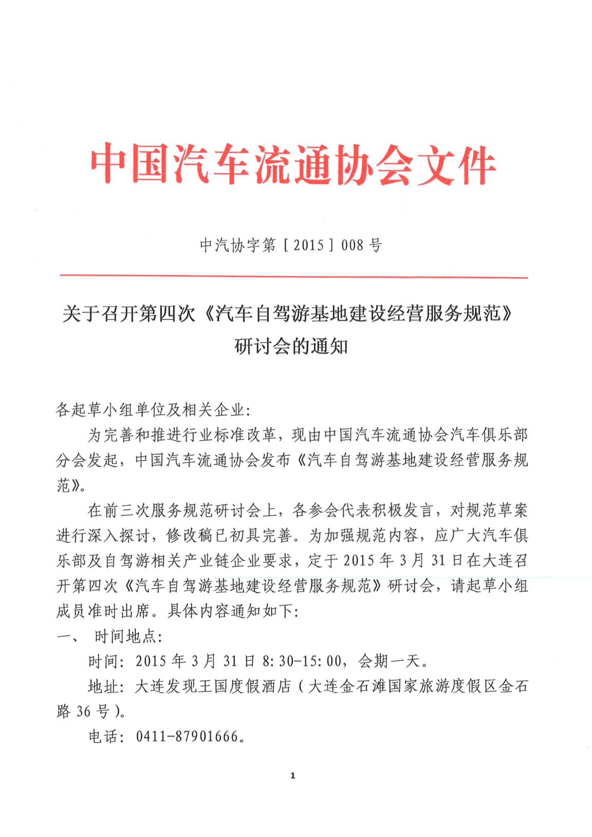 關於召開第四次汽車自駕遊基地建設經營服務規範的通知