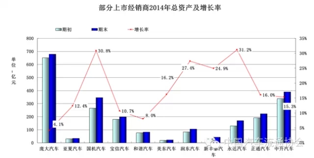 圖1 部分上市經銷商2014年總資產(chan) 及增長率