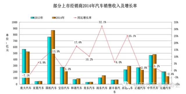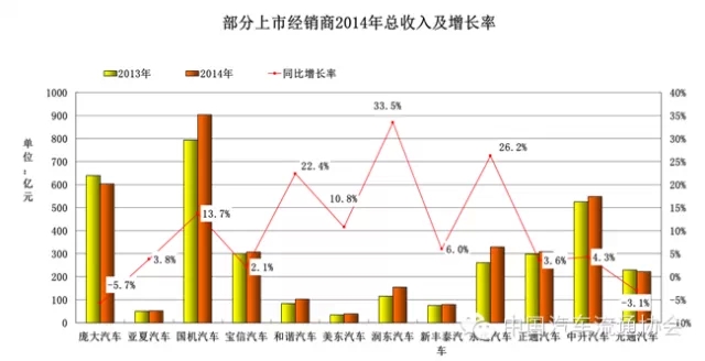 圖2 部分上市經銷商2014年總收入及增長率