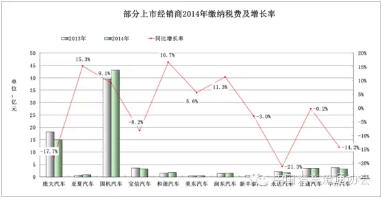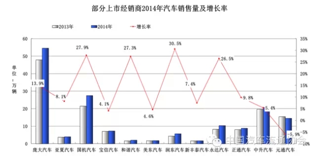圖3 部分上市經銷商2014年新車銷售量及增長率