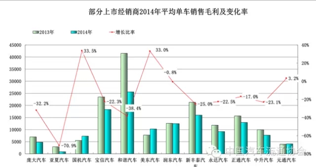 圖11 部分上市經銷商2014年平均單車銷售毛利及增長率