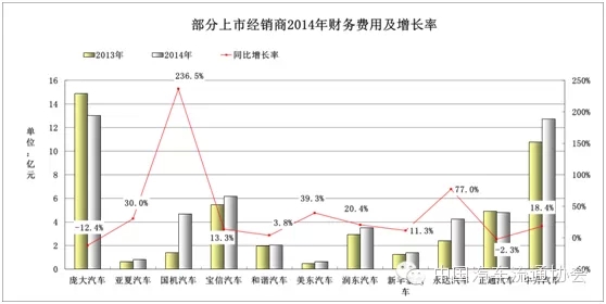 圖16 部分上市經銷商2014年融資成本及增長率