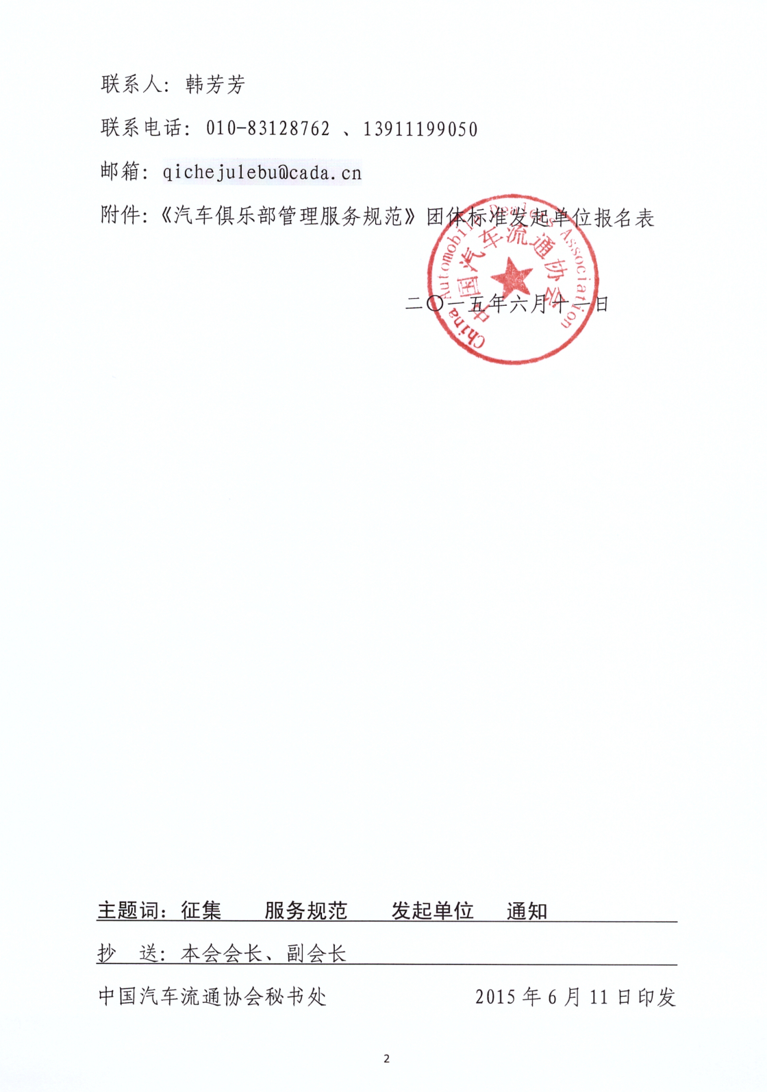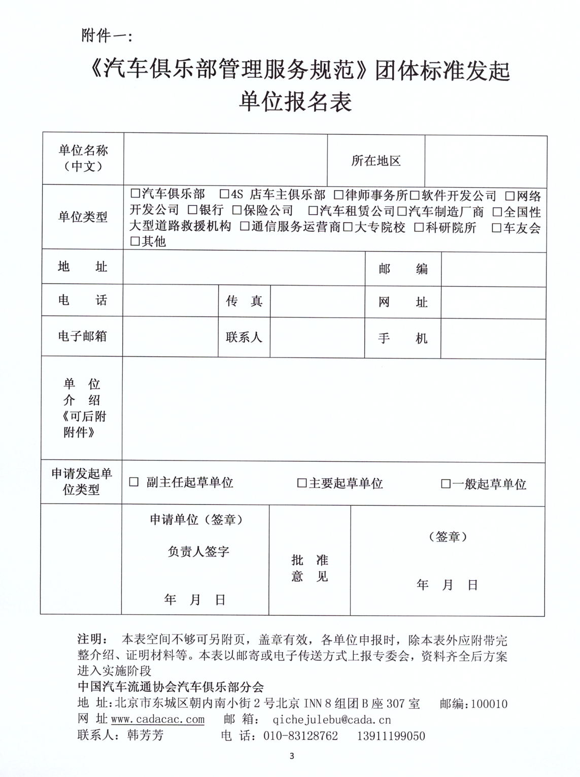 關於征集《汽車俱樂部管理服務規範》發起單位的通知