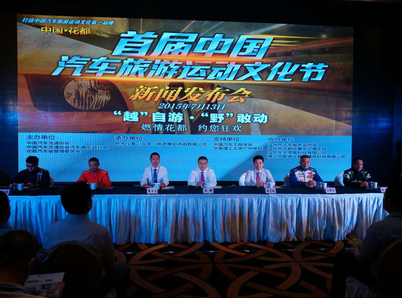 7月13日,首屆中國汽車旅遊運動文化節新聞發布會在廣州富力空港假日酒店隆重召開,中國汽車流通協會、中國汽車工程學會、华体会体育hth首页、花都區政府、花都汽車城管理委員會、華南理工大學廣州學院、中汽行者(北京)旅遊策劃谘詢有限公司等相關單位和機構的領導及中國各屆汽車越野賽冠軍車手代表、新聞媒體共100多人出席了新聞發布會。