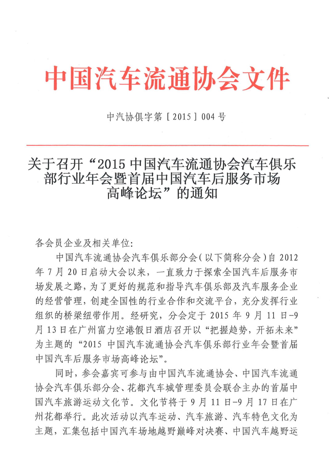 2015中國汽車流通協會汽車俱樂部行業年會即將召開!
