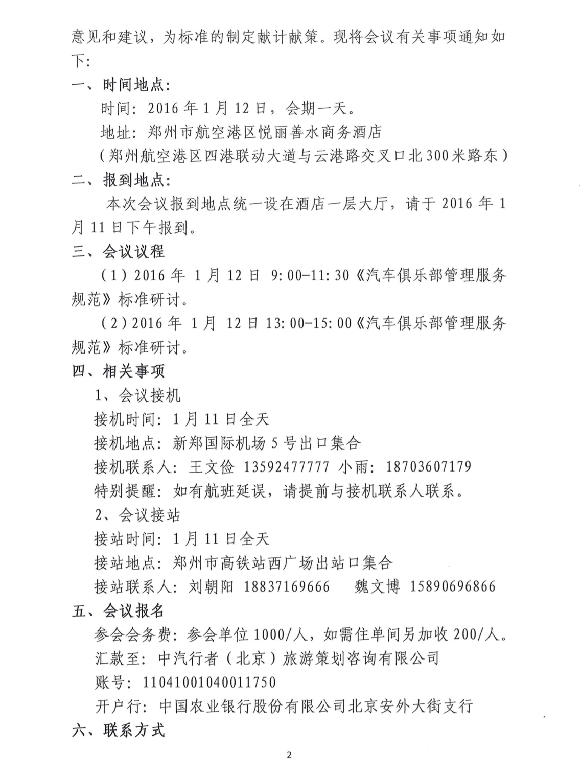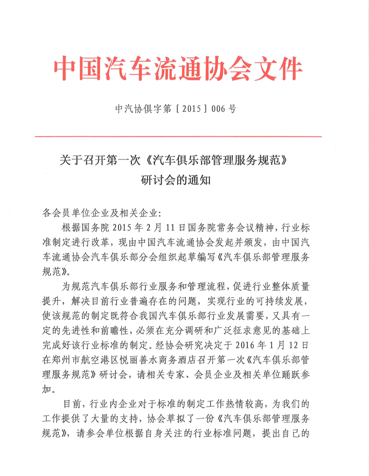 第一次《汽車俱樂部管理服務規範》研討會召開的通知