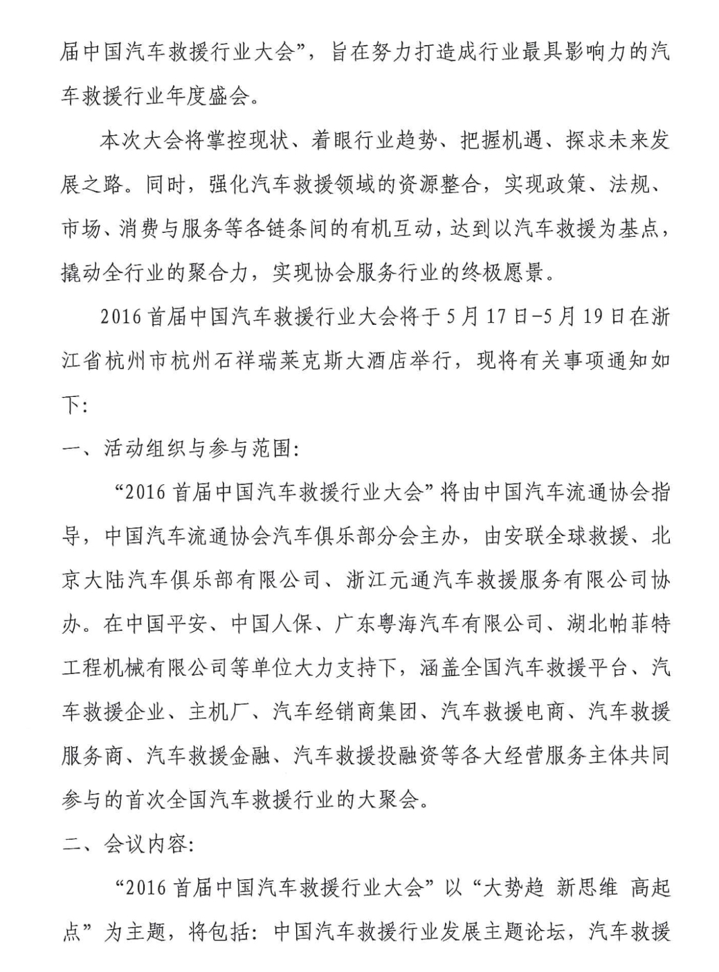 2016“首屆中國汽車救援行業大會”即將召開