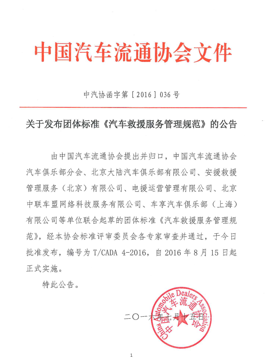 關於發布團體標準《汽車救援服務管理規範》的公告