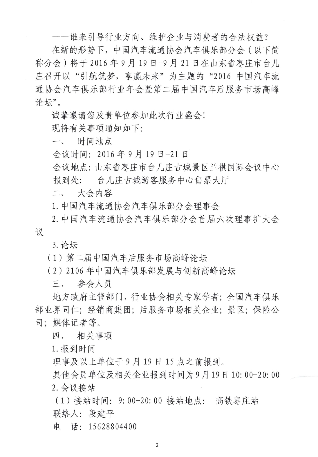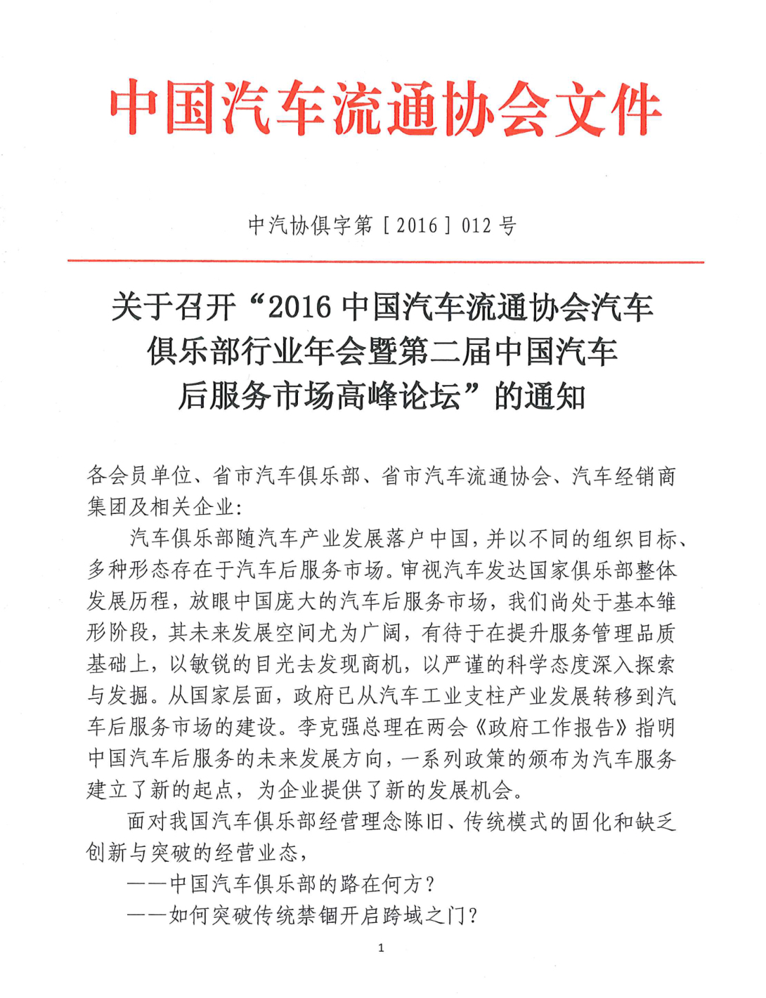 關於召開2016中國汽車流通協會汽車俱樂部行業年會的通知