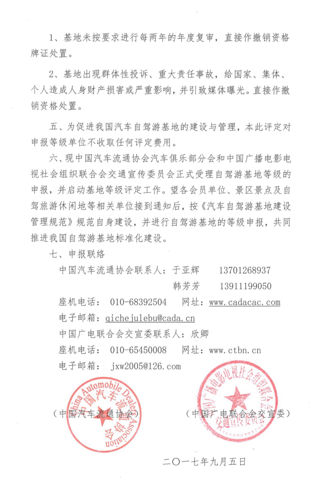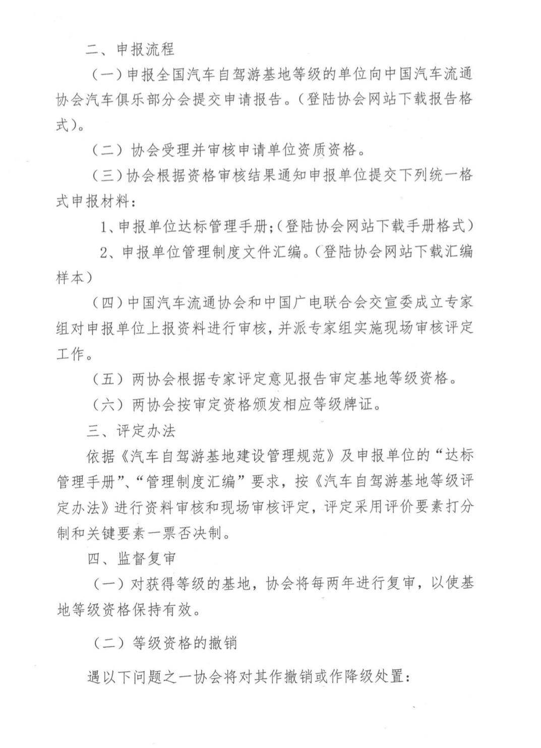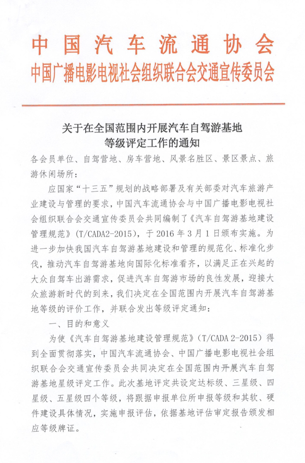 關於在全國範圍內開展汽車自駕遊基地等級評定工作的通知