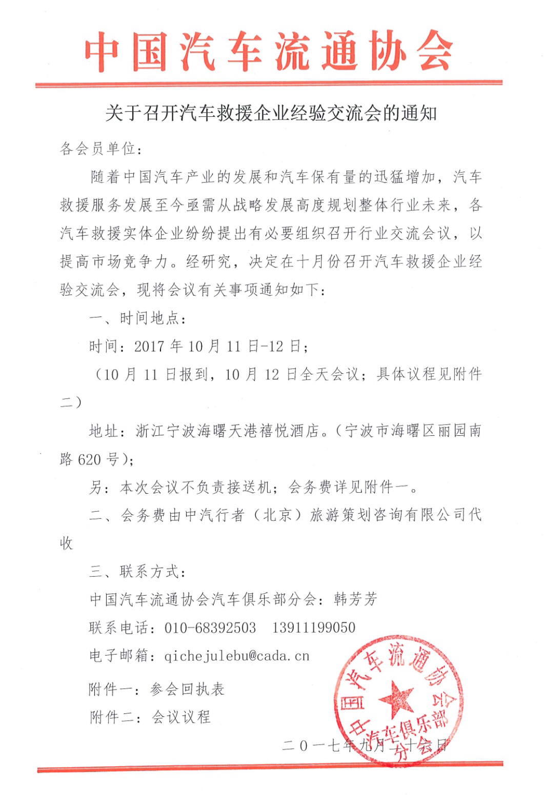 關於召開汽車救援企業經驗交流會的通知